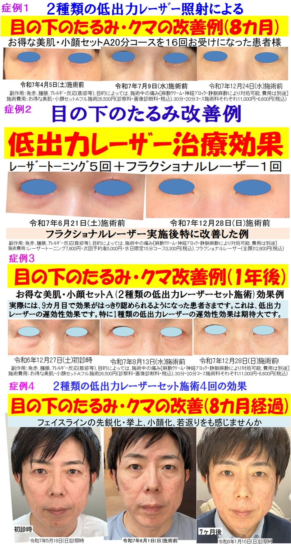 レーザートーニング、お得な美肌・小顔セットAまたはBなど
