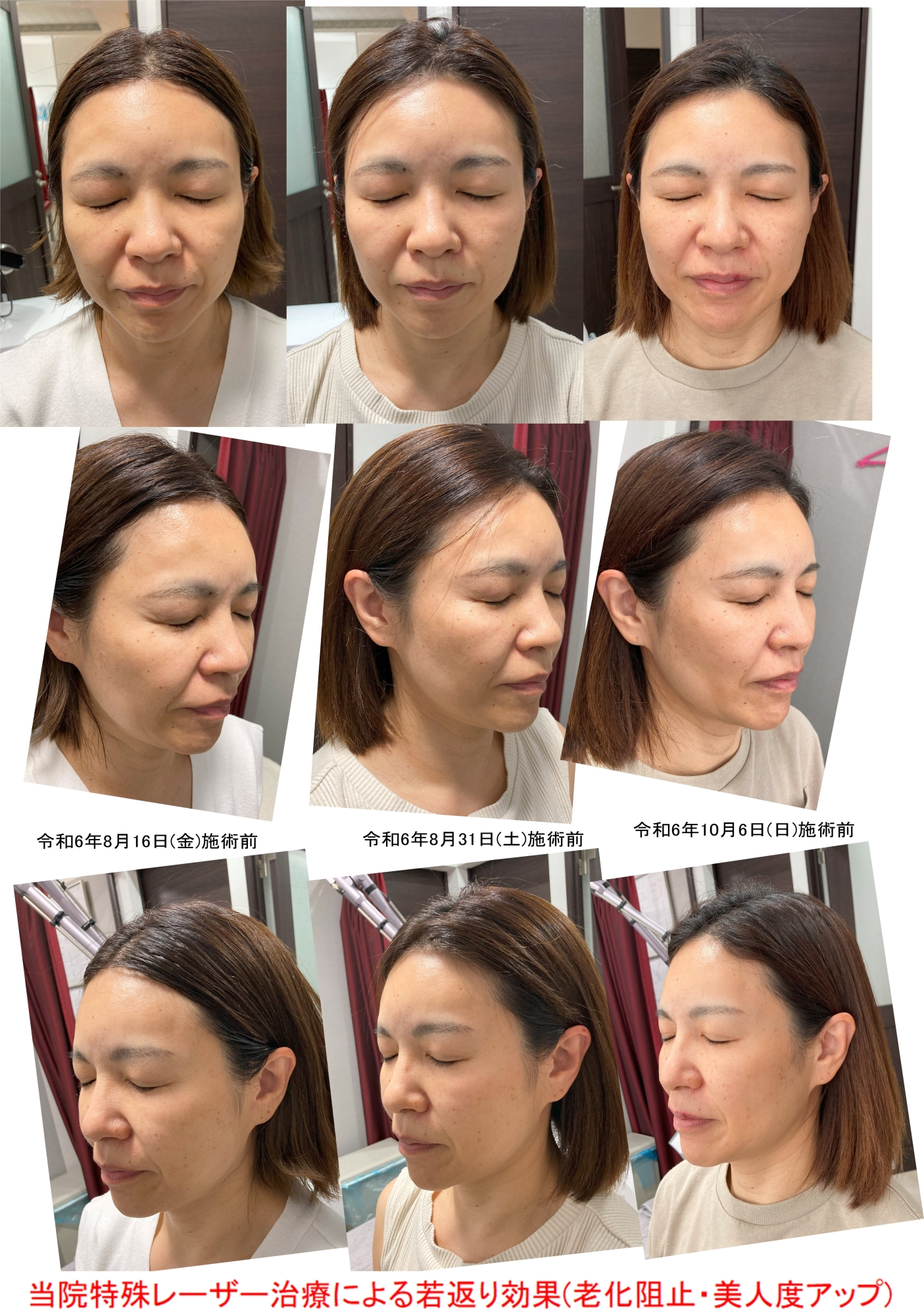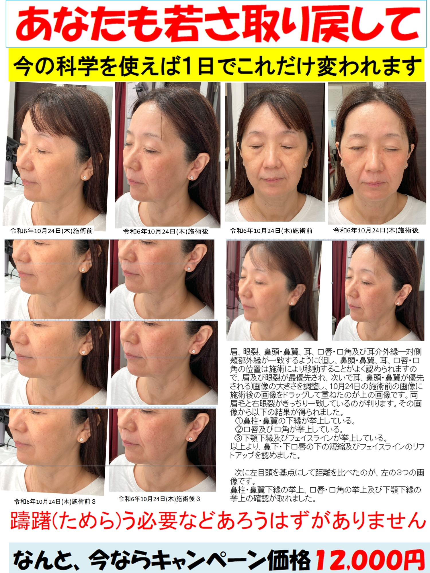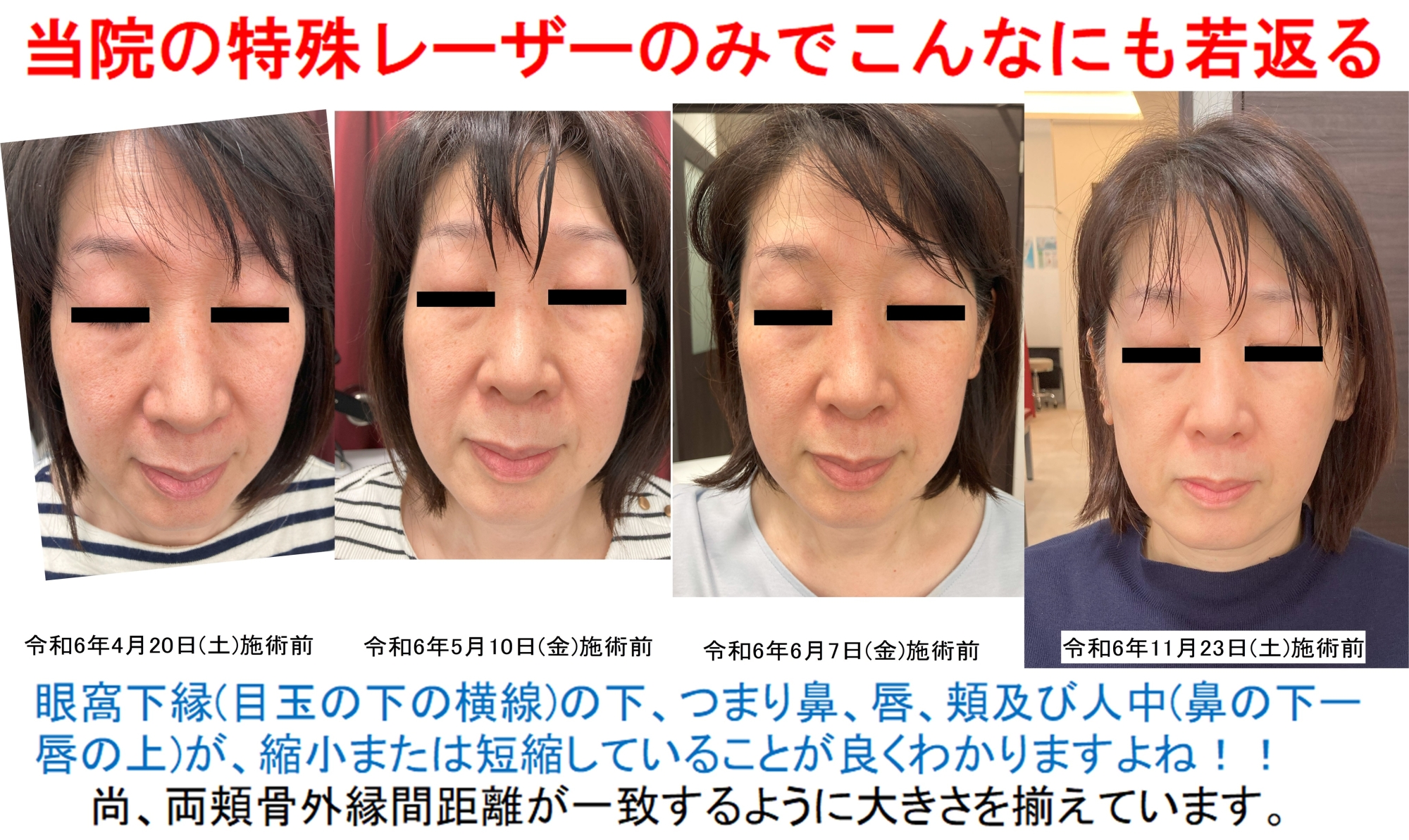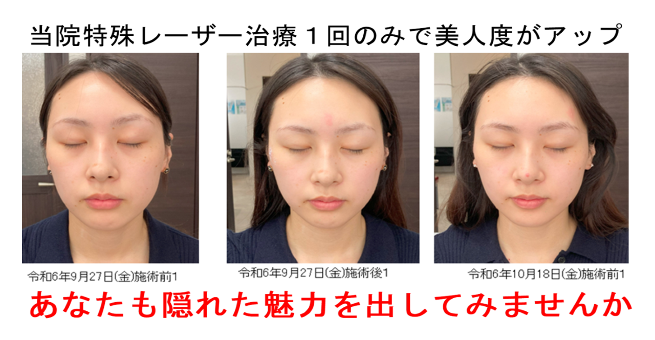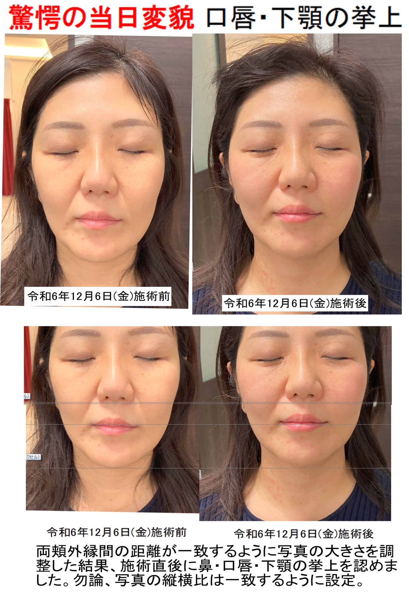 お得な美肌・小顔スペシャルセットA先日は令和6年11月15日(金)、本日は令和6年12月7日(日)とても施術が著効した患者さんが来られたので皆さんにご覧いただきます。