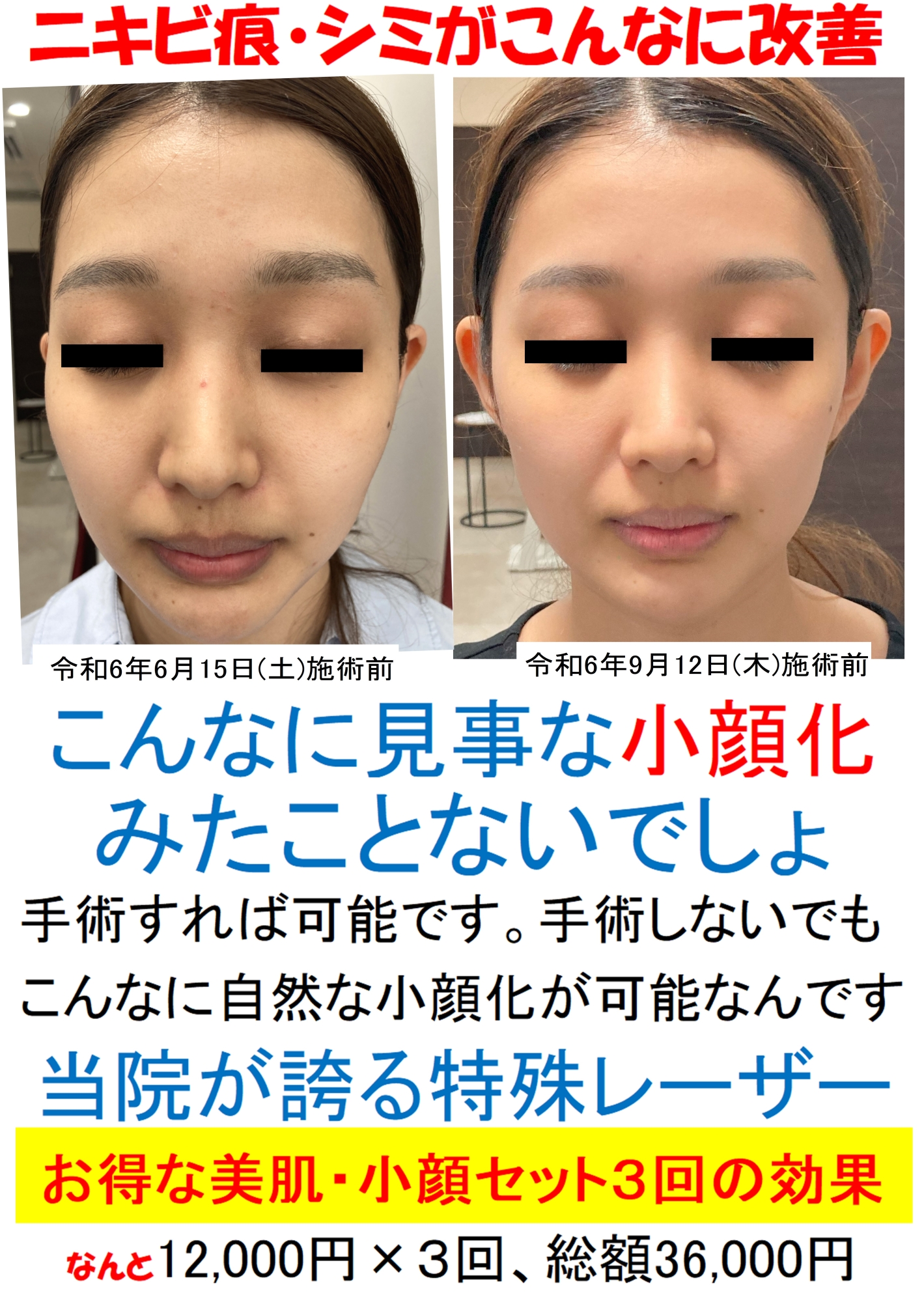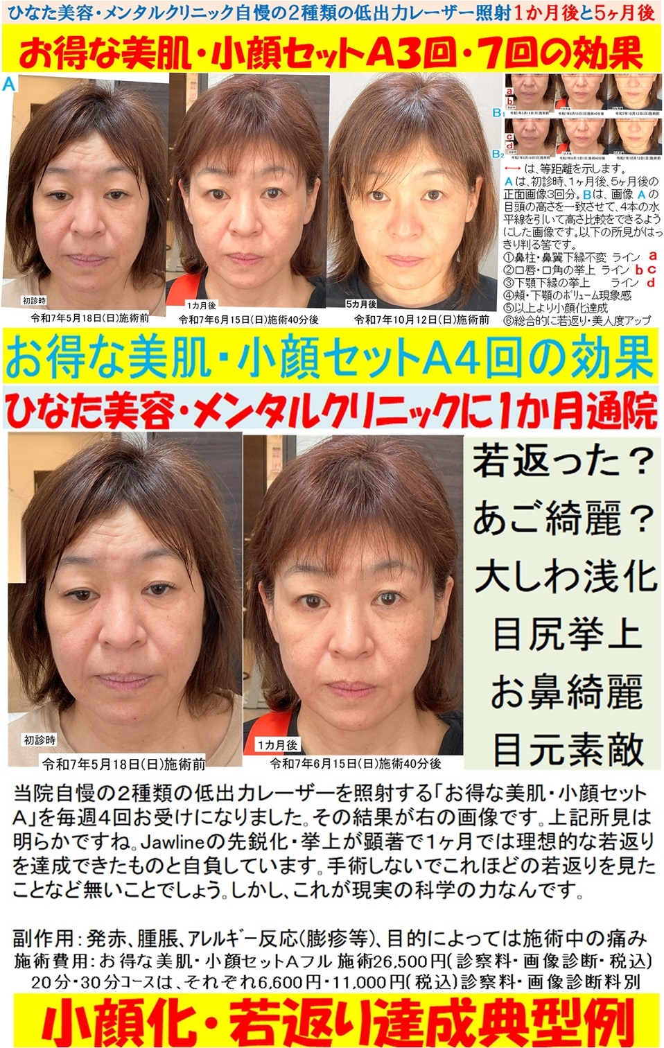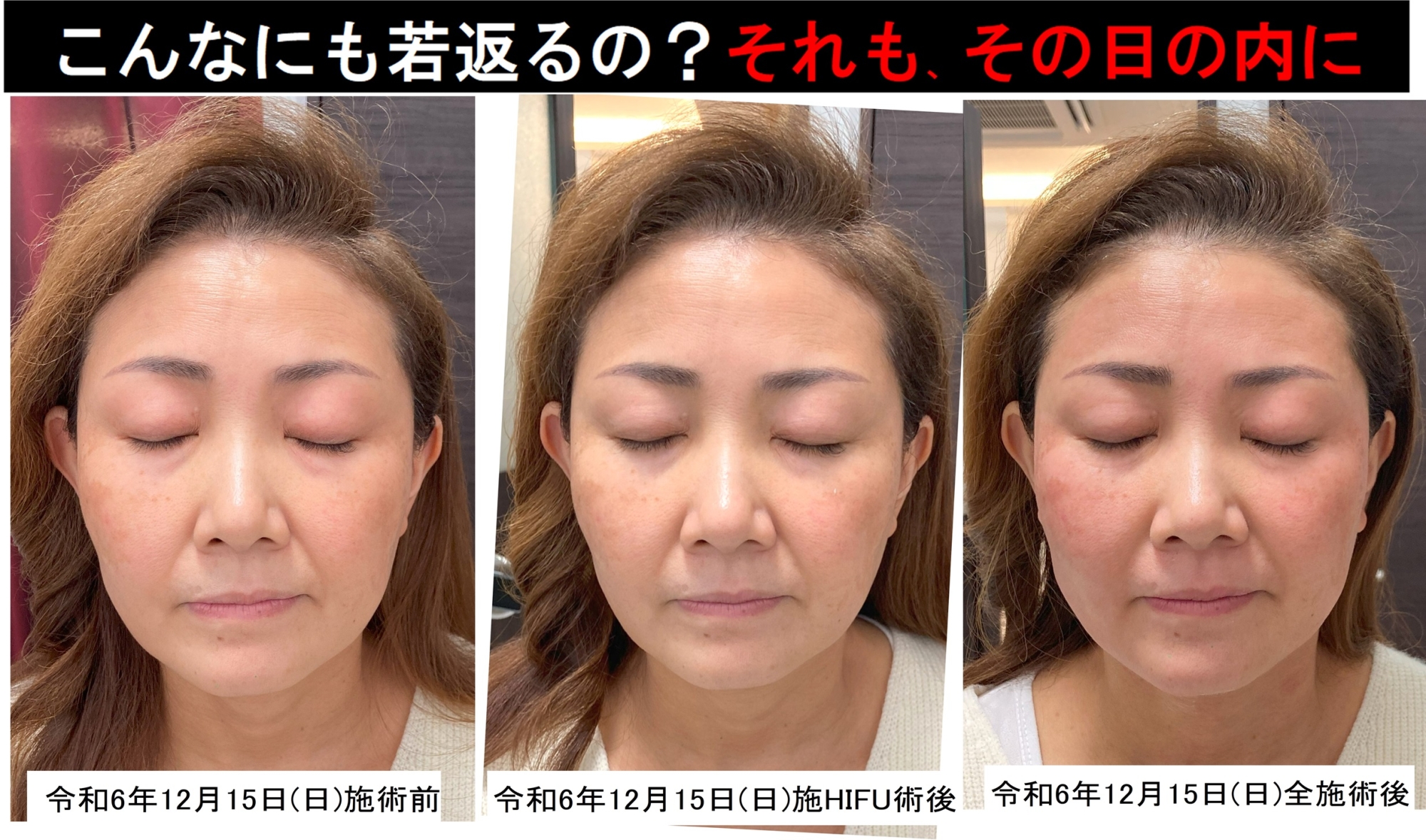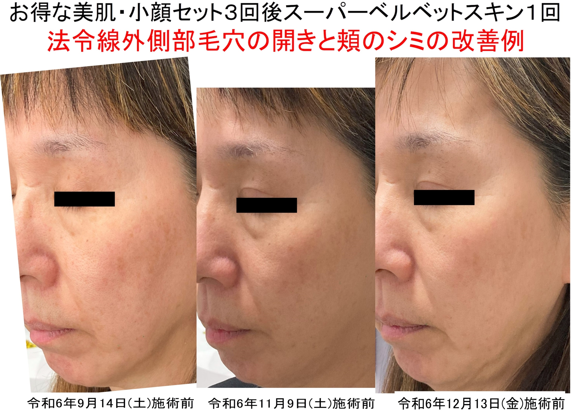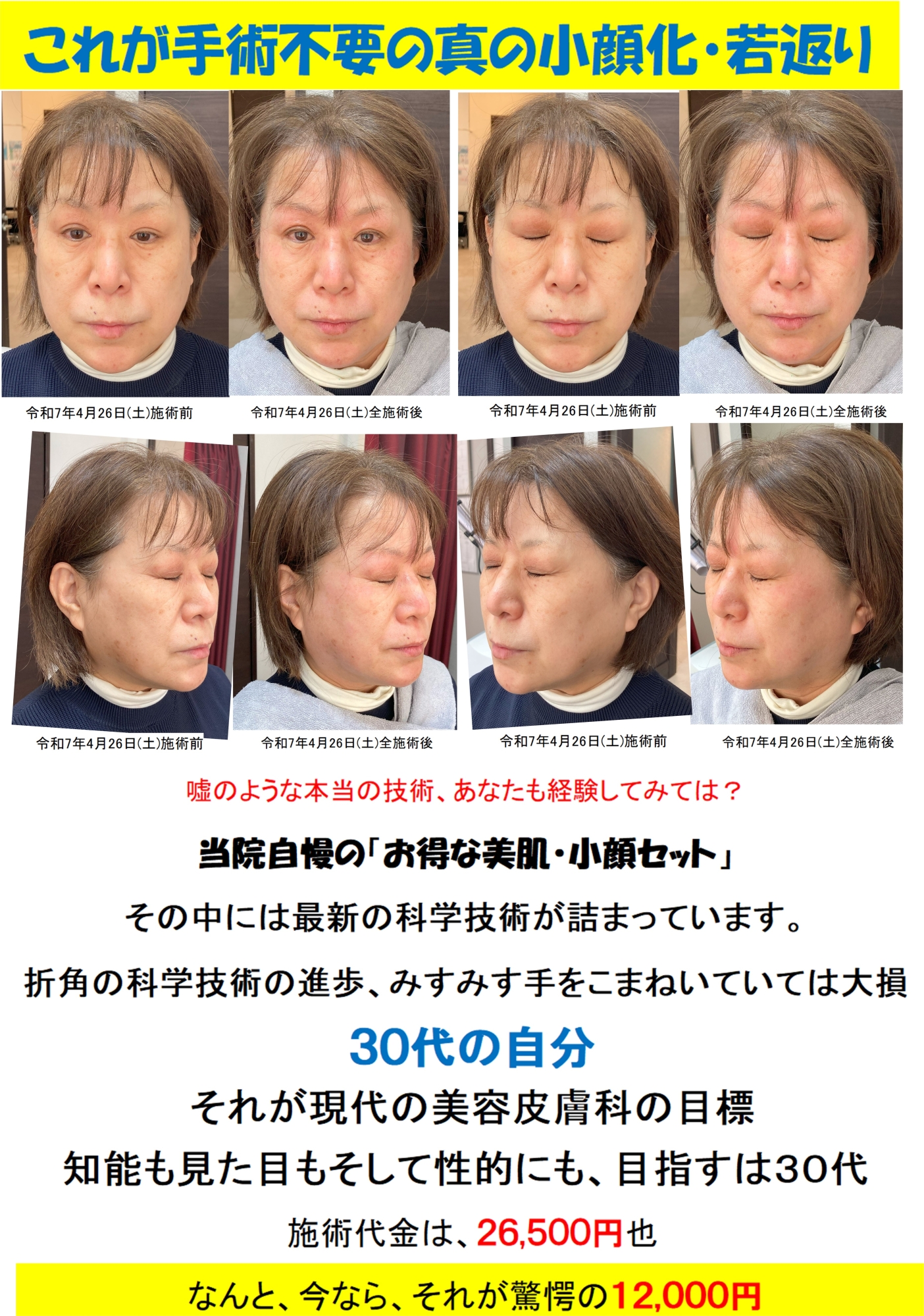 お得な美肌・小顔スペシャルセットA先日は令和6年11月15日(金)、本日は令和6年12月7日(日)とても施術が著効した患者さんが来られたので皆さんにご覧いただきます。
