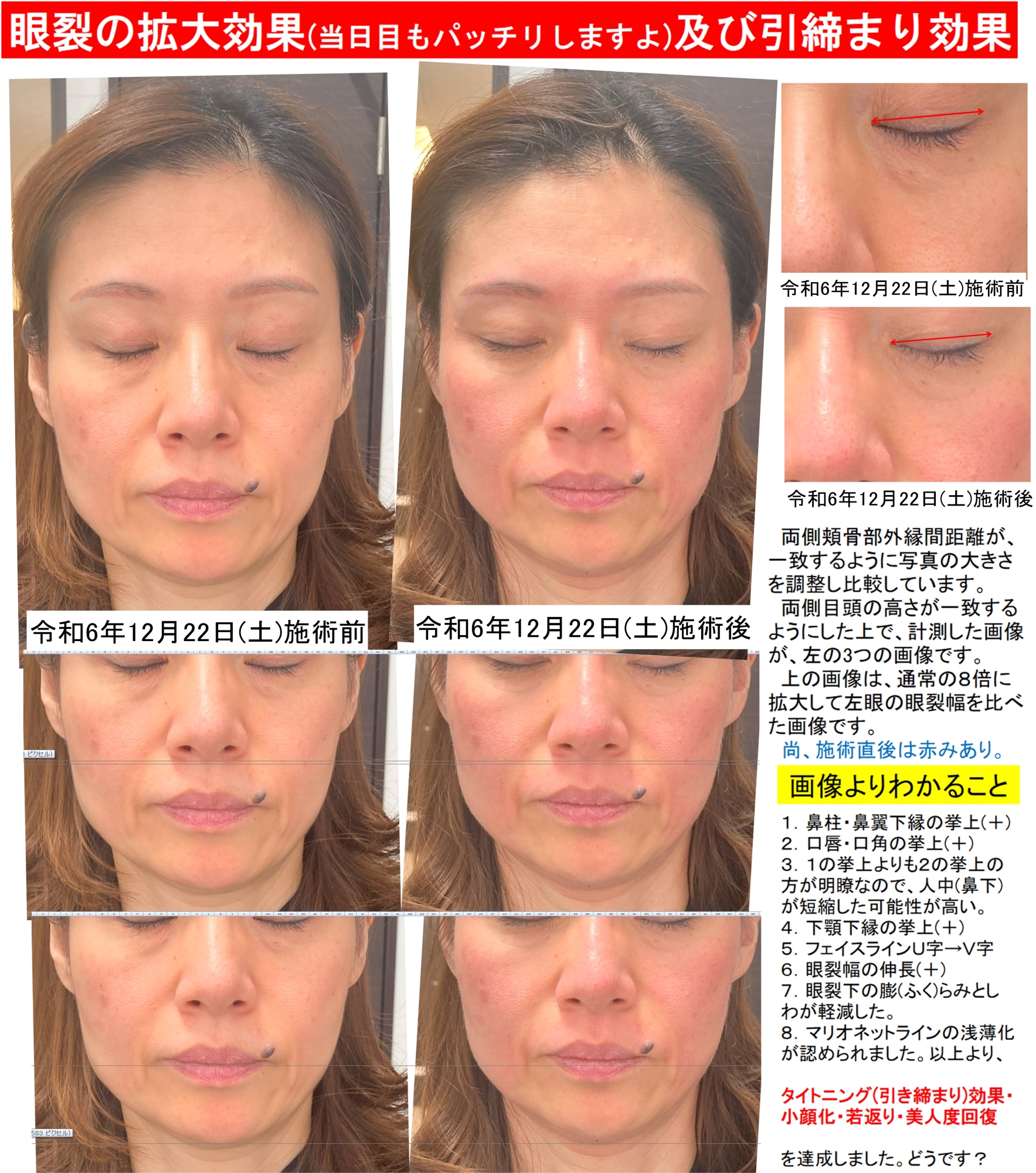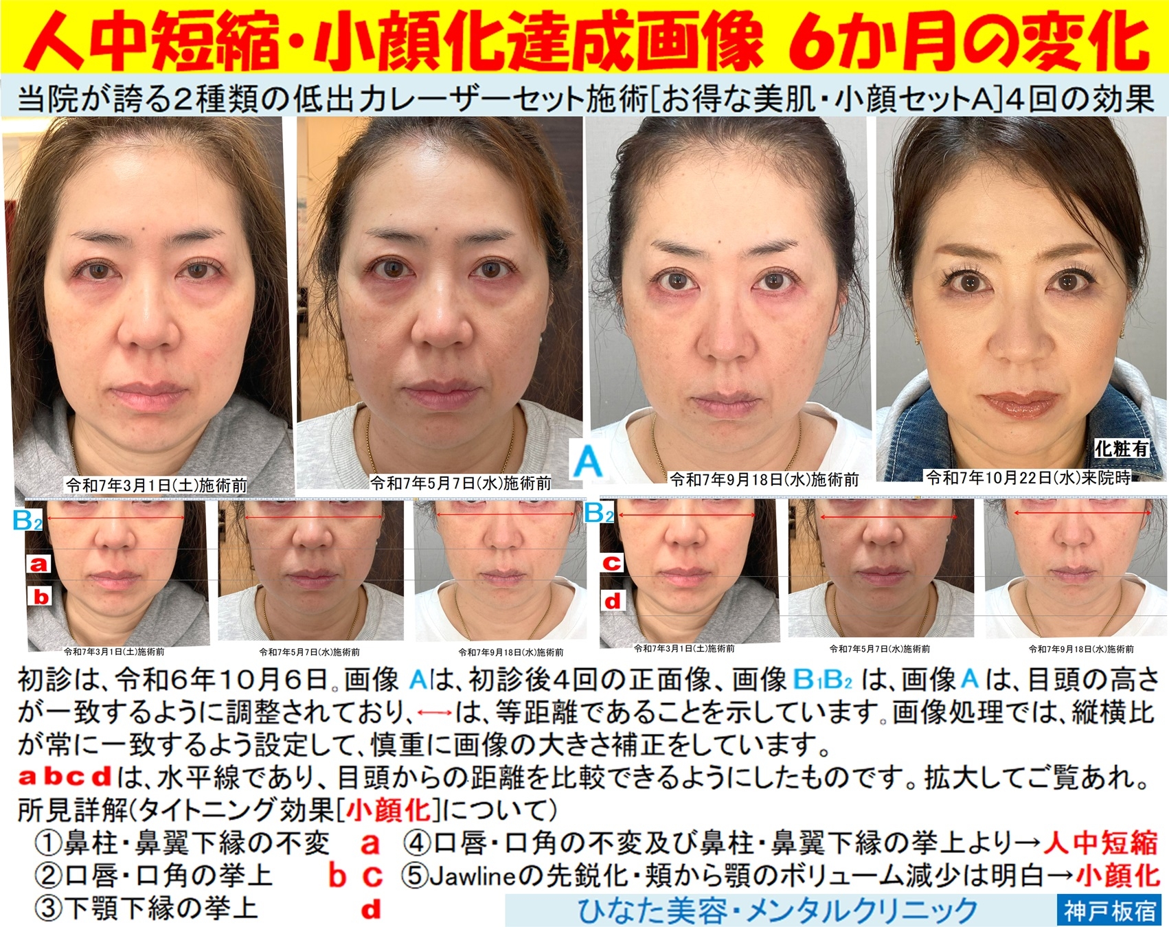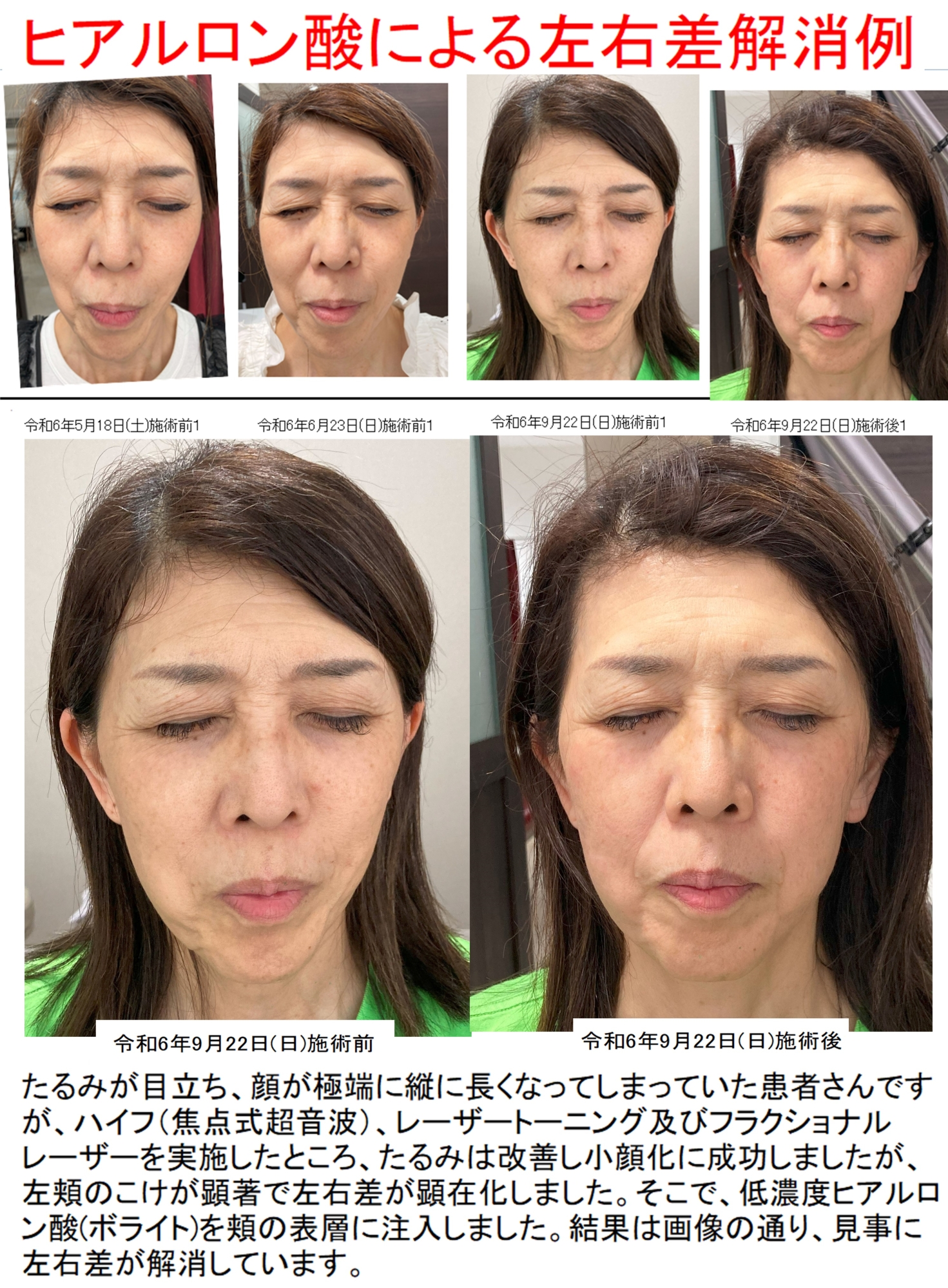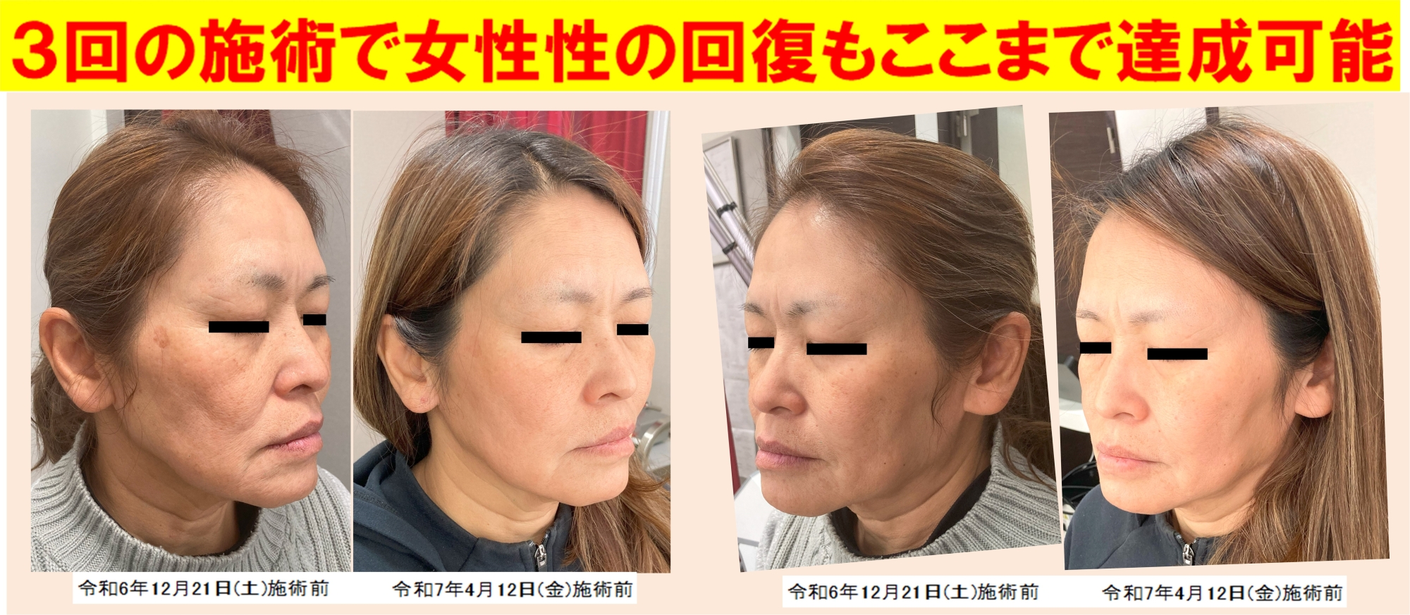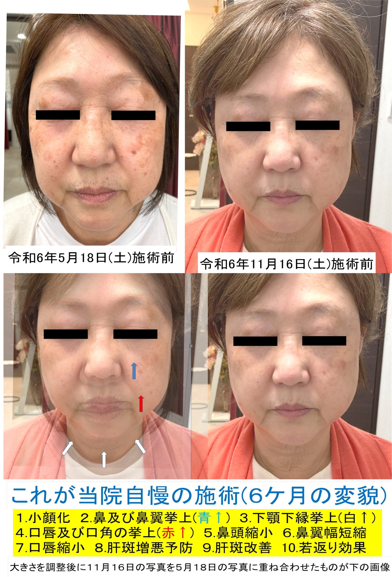 お得な美肌・小顔スペシャルセットA先日は令和6年11月15日(金)、本日は令和6年12月7日(日)とても施術が著効した患者さんが来られたので皆さんにご覧いただきます。