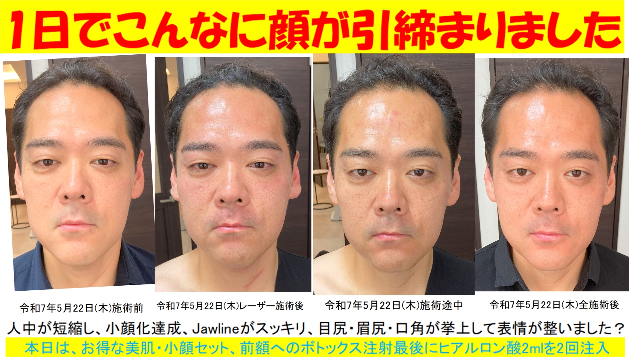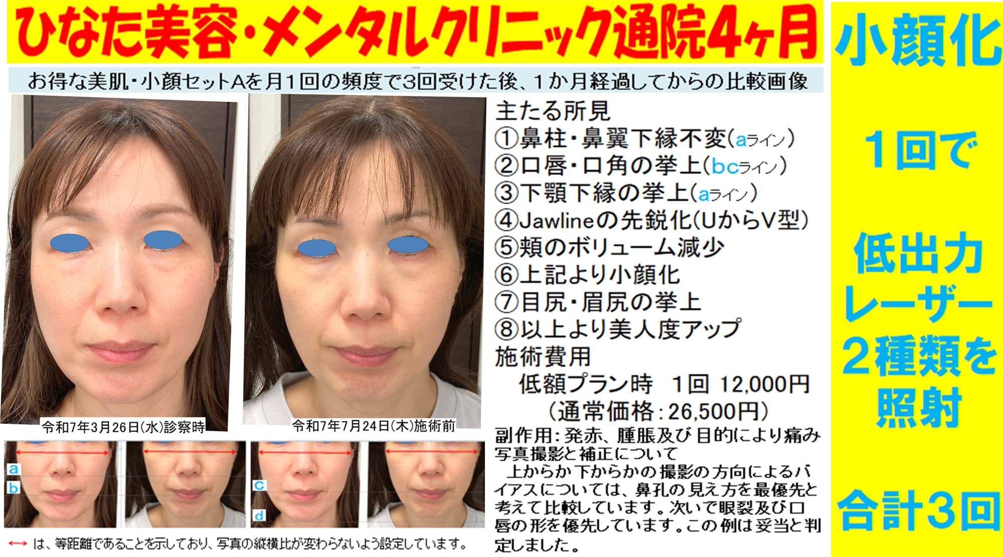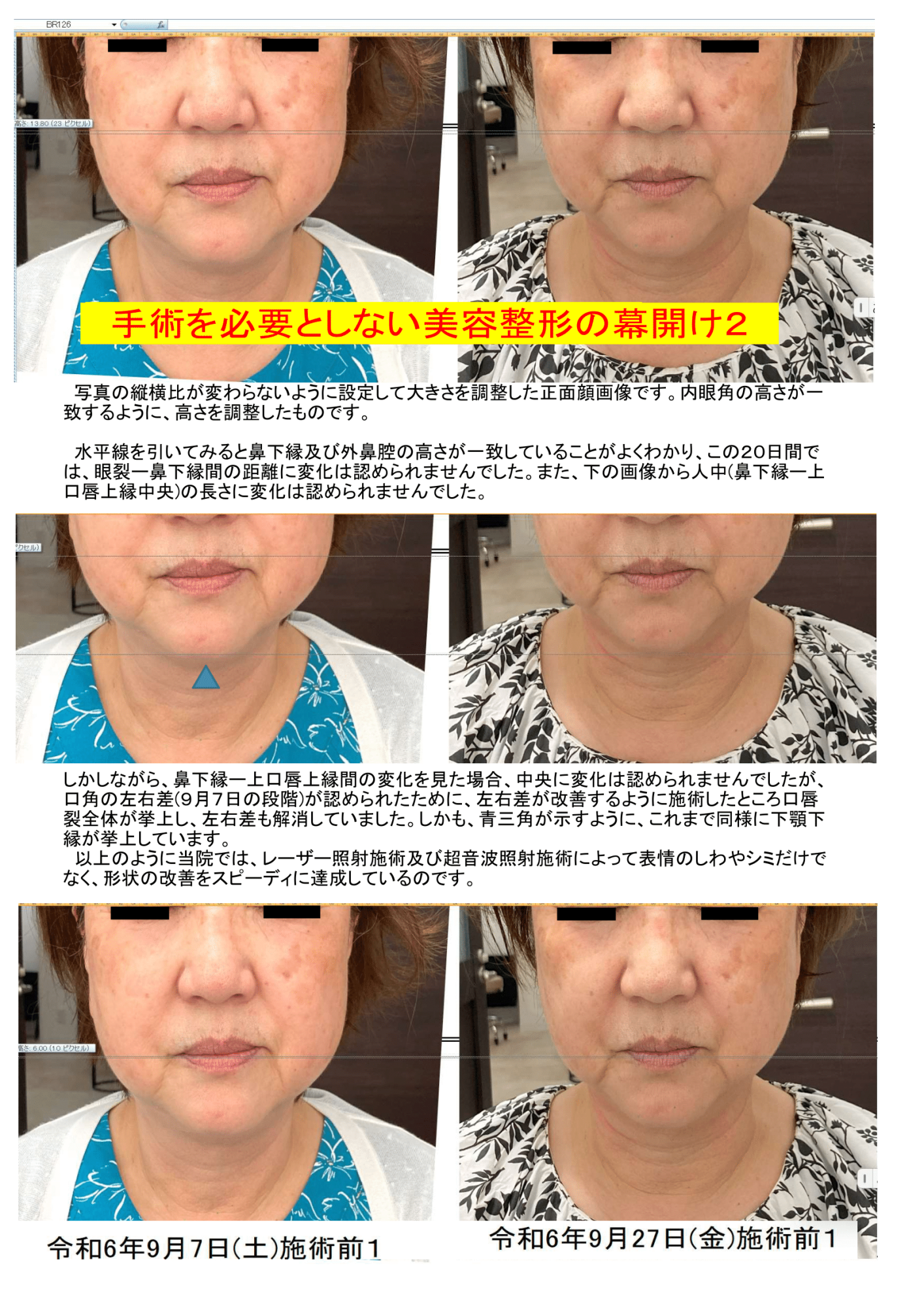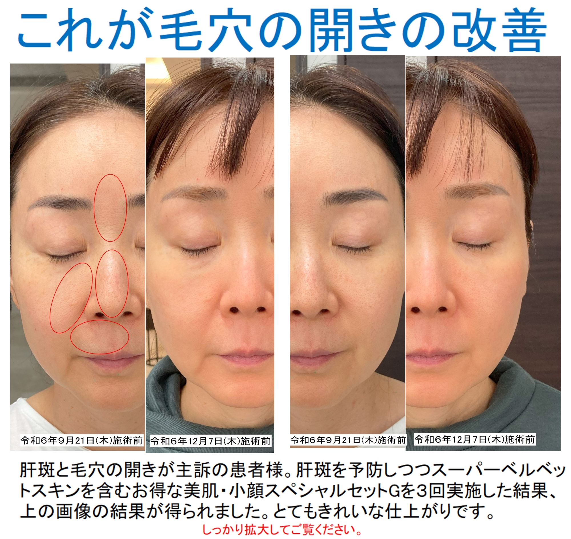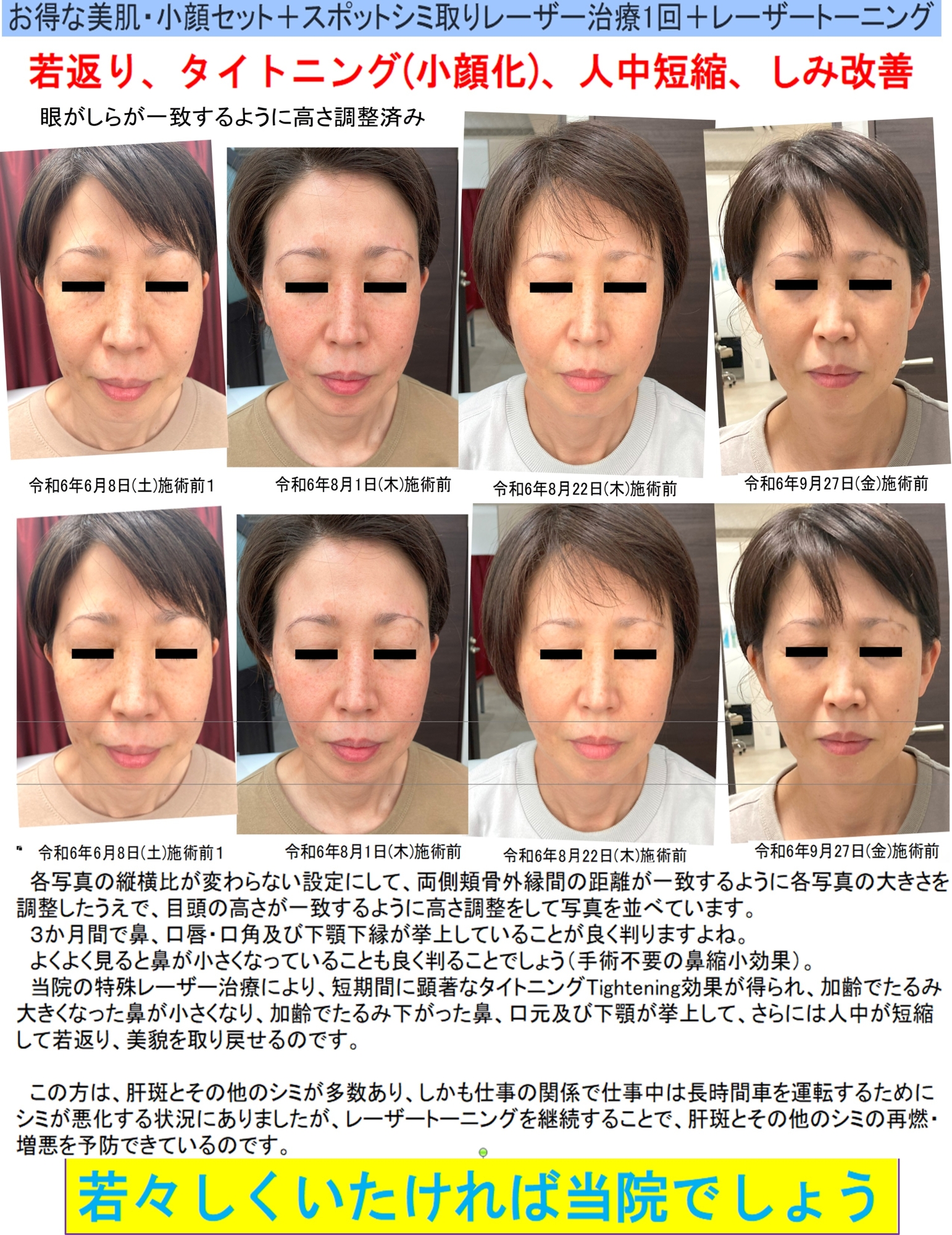 お得な美肌・小顔スペシャルセットA先日は令和6年11月15日(金)、本日は令和6年12月7日(日)とても施術が著効した患者さんが来られたので皆さんにご覧いただきます。