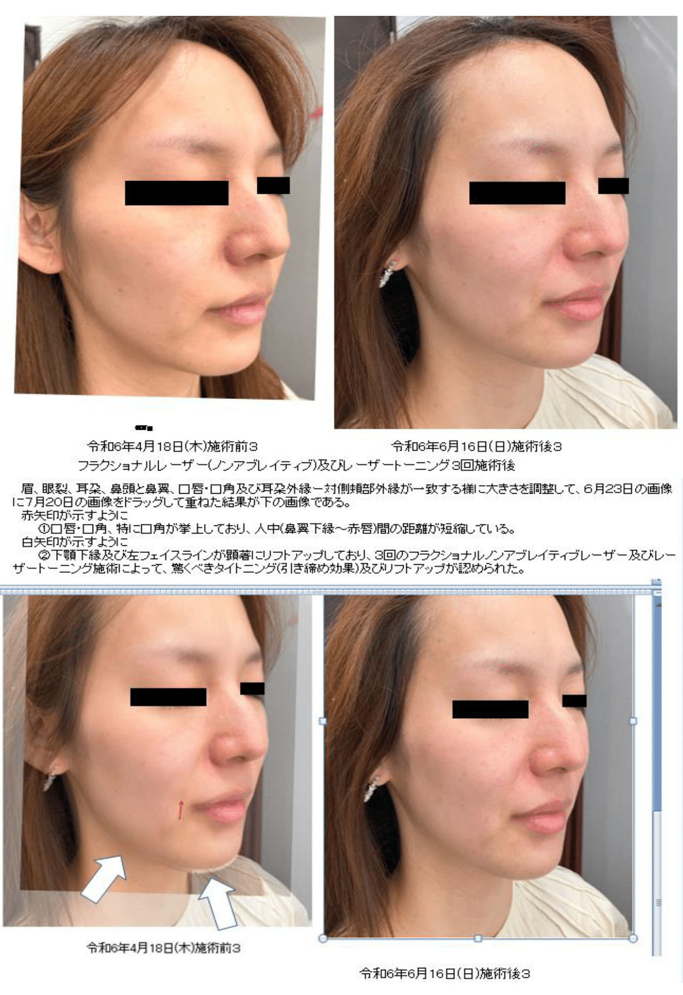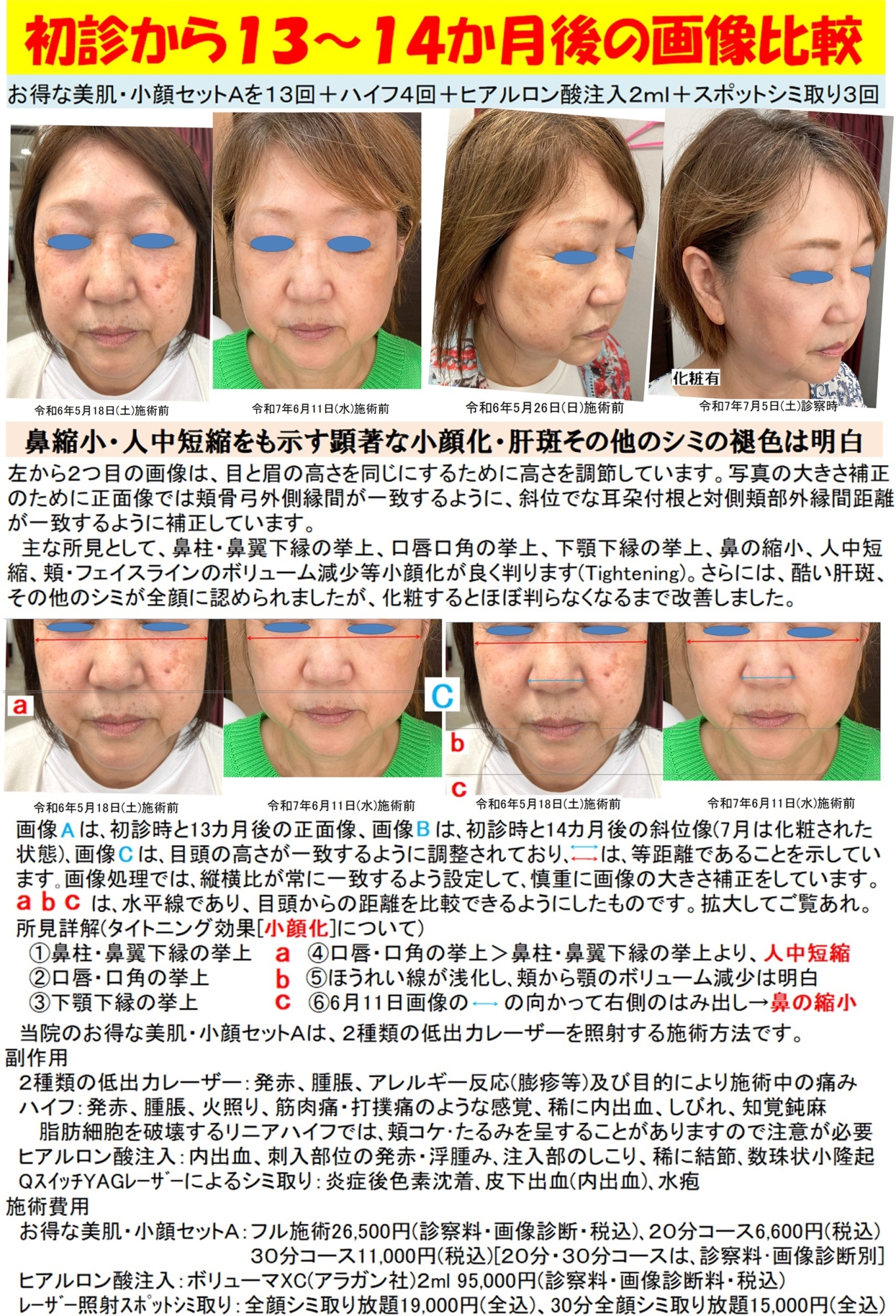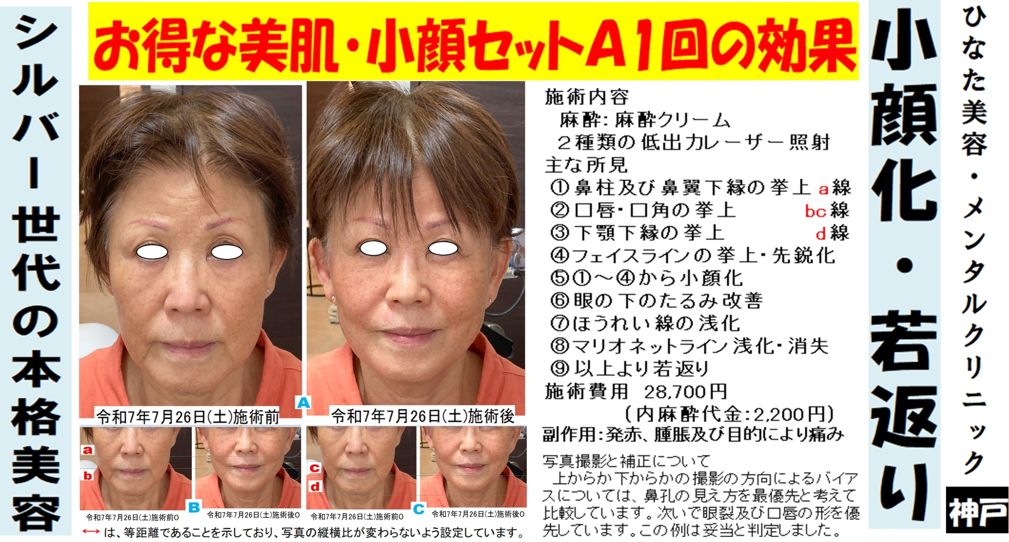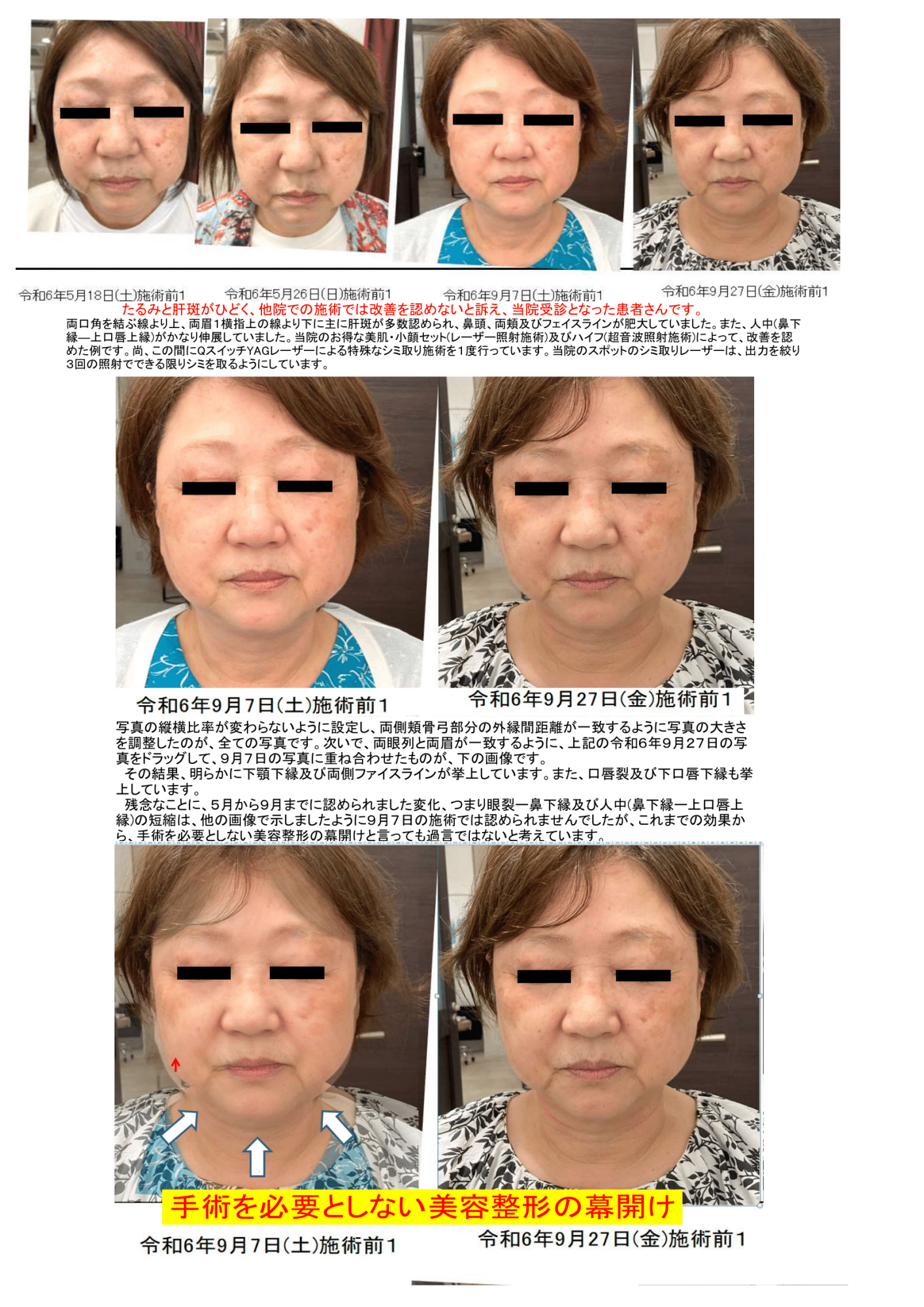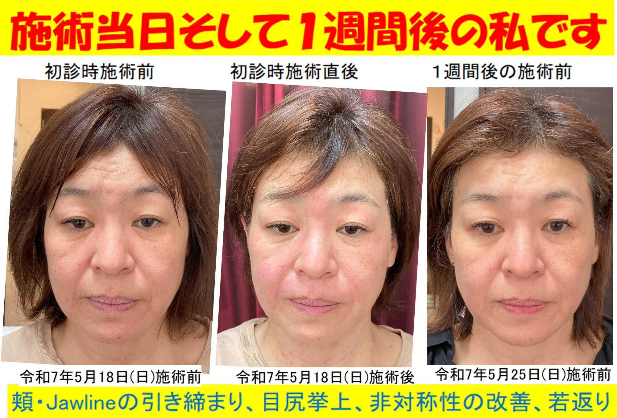 お得な美肌・小顔スペシャルセットA先日は令和6年11月15日(金)、本日は令和6年12月7日(日)とても施術が著効した患者さんが来られたので皆さんにご覧いただきます。