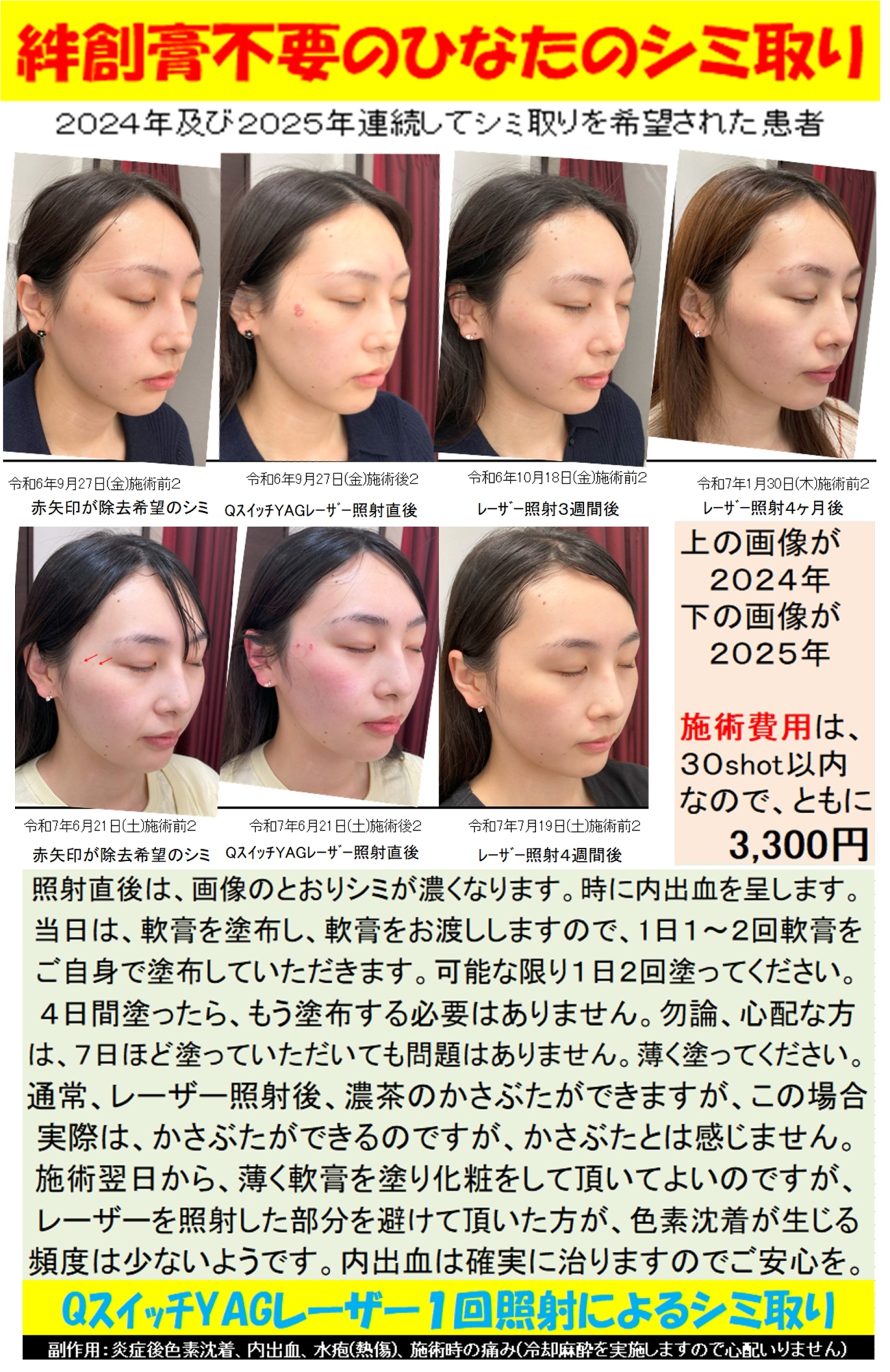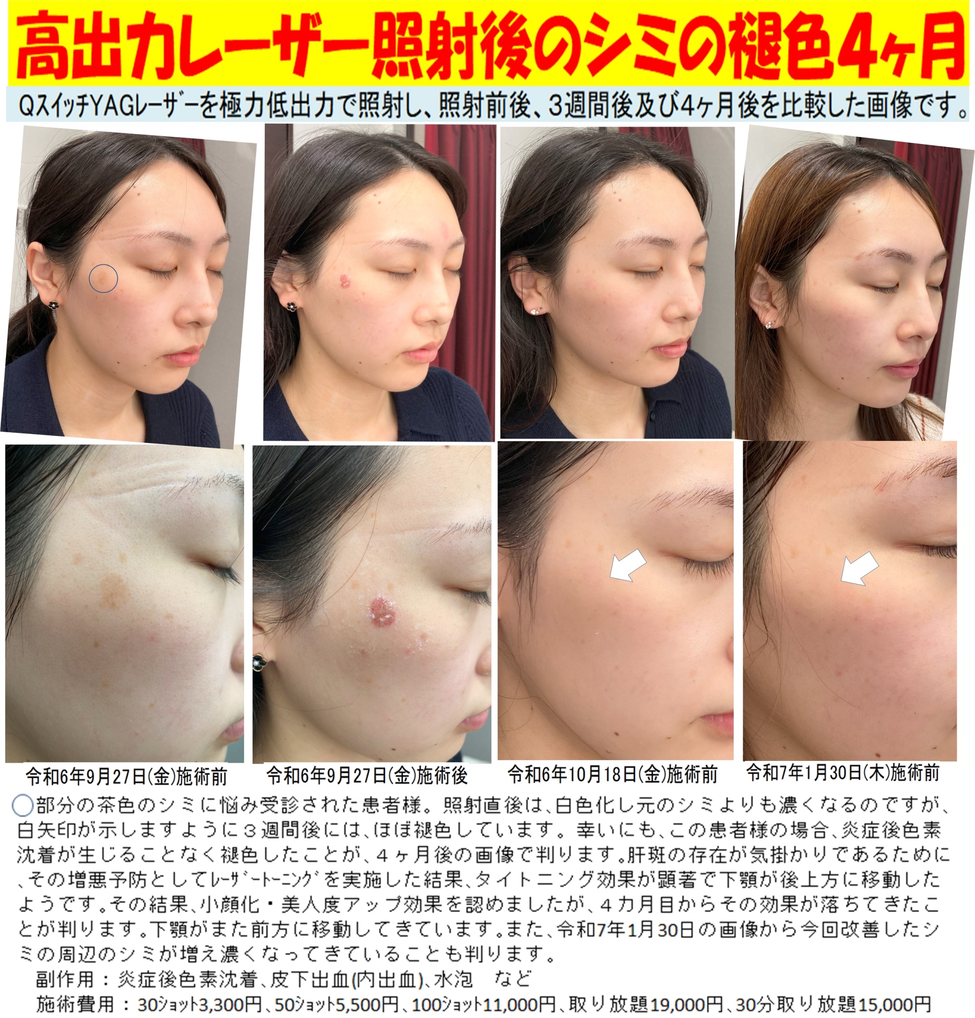 フェイスラインは綺麗になり、両頬のシミ・肝斑が褪色していることが判ります。