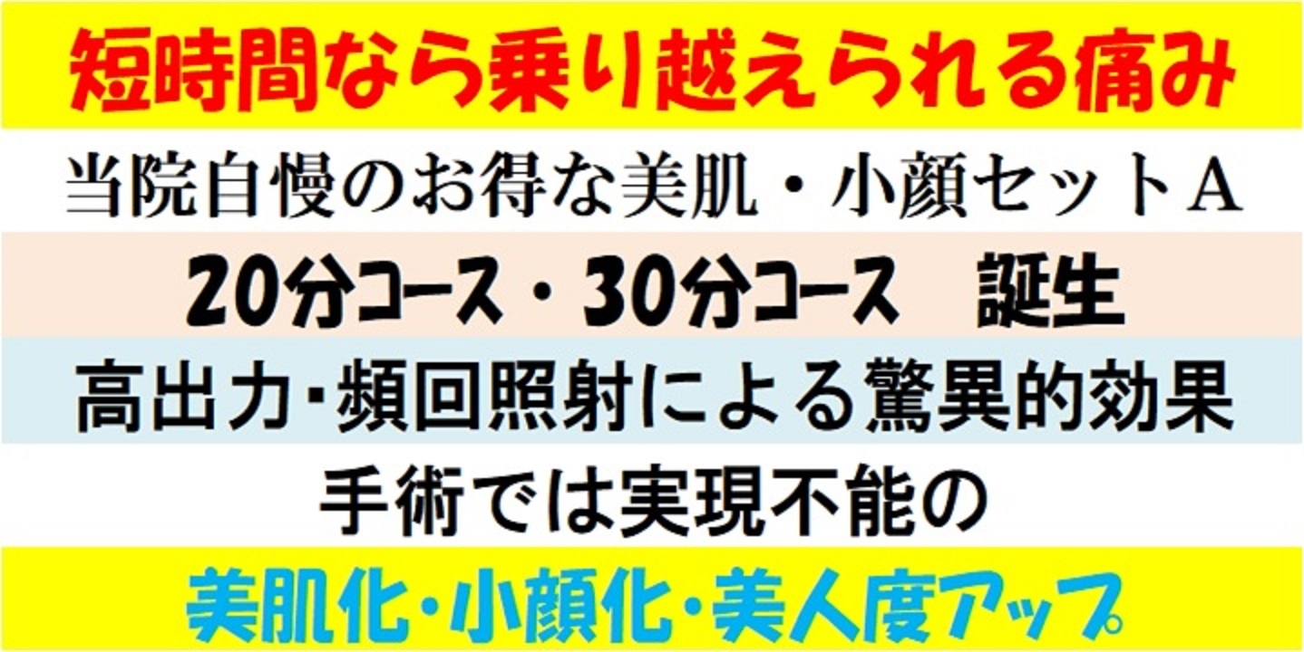 お得な美肌・小顔セットAフル施術を初診時に1回、その後お得な美肌・小顔セットA20分を