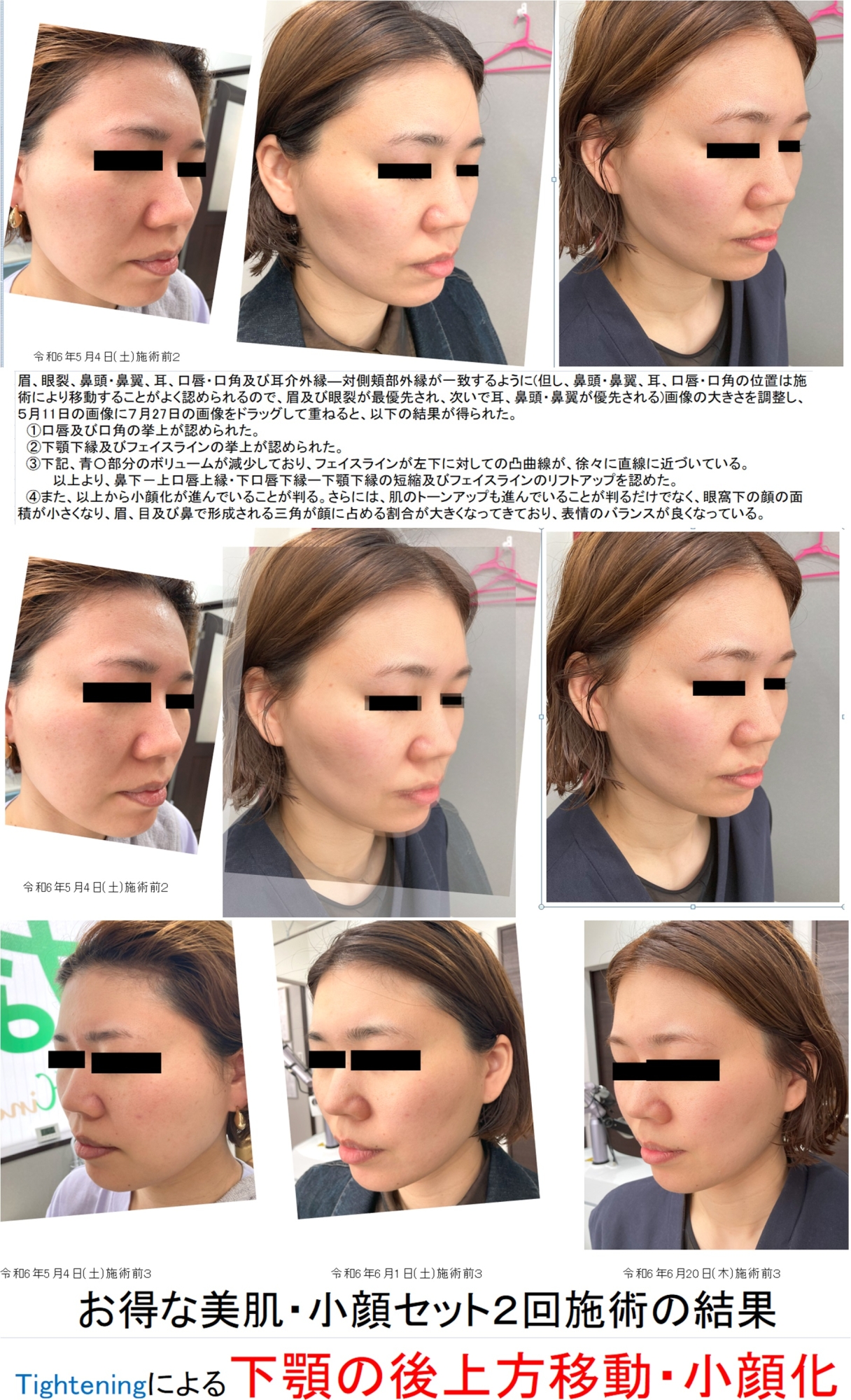 効果があった症例4 Tightening タイトニング お得な美肌・小顔スペシャルセットAを1回受けた患者様